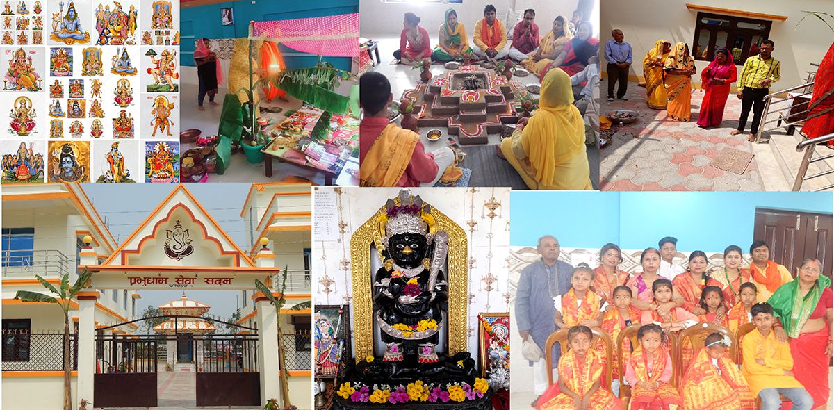 Prabhu Dham Seva Sadan has a small temple and the deities in the temple are worshipped in the morning and evening with great devotion followed by aarti(hindu prayer for god). We are determined to preserve and grow the belief in people for HIndu Sanatan Dharma with an inner belief of “God is one”. We highly believe that all persons are equal regardless of caste, creed, gender, the religion they follow, etc. We have also organized a weekly activity of conducting a bhajan program on every Saturday and hearing Hindu scriptures from Gurus. All festivals celebrated in Hindu nations are celebrated with joy and unity. Every year on March 24, we celebrate the inauguration of Prabhu Dham Seva Sadan as the birthday of God “Mahankaal” who is resided in the temple at PDSS.